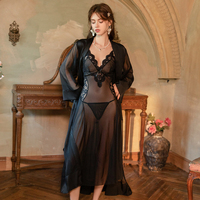 High Quality Sleepwear Sexy Nightgowns Sweet Sheer Lace Pure Velvet Camisole Night Dress and Kimono Robe Set C6132